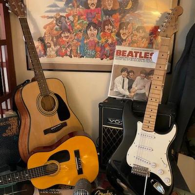 Music & Media: 300+ vintage LPs, guitars, stereo systems, posters, CDs, DVDs.